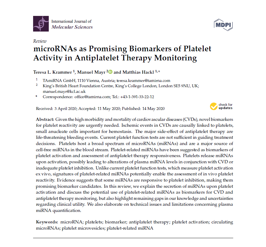 microRNAs as promising biomarkers of platelet activity in antiplatelet therapy monitoring..